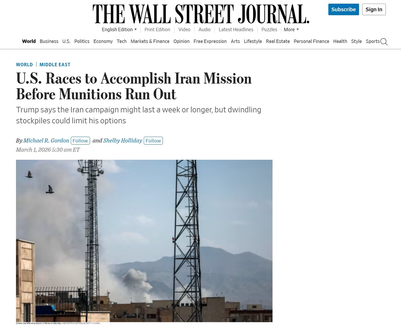 Darüber hinaus berichtet das Wall Street Journal, dass nicht nur Abfangraketen, sondern auch Tomahawk-Marschflugkörper knapp sind. Auch Fox News berichtet über das Risiko einer Erschöpfung der US-Lenkflugkörperarsenale. Die Schlagzeile dazu besagt: